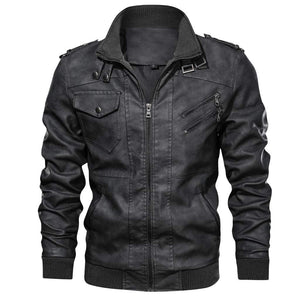 Landscap_Men Leather Motorcycle Jacket Hoodie Zipper Fashion