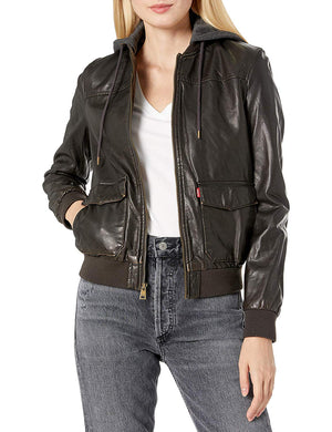 Levi's Two-Pocket Faux Leather Hooded Bomber Jacket