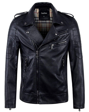 chouyatou Men's Zip Lightweight Faux Leather Biker Jacket