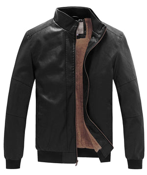 WenVen Men's Winter Stand Collar Moto Bomber Faux Leather Jackets
