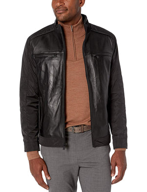 Cole Haan Men's Smooth Leather Classic Moto Jacket